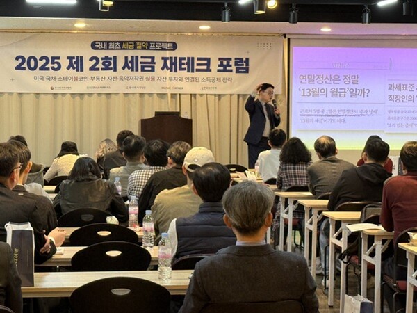 이번 포럼에서는 최대 1,000만 원 이상의 세금을 절약할 수 있는 실질적인 절세 전략이 집중적으로 다뤄졌다. 벤처투자를 중심으로 미국국채·스테이블 코인, 부동산, 음악 저작권 등 다양한 투자 자산을 활용한 절세 방안이 소개되었으며, 각 자산별 세제 혜택과 환급 구조가 구체적으로 설명됐다. 특히 안정형 자산인 미국 국채와 스테이블 코인 전략, 부동산 투자 관리, 음악 저작권을 활용한 장기 포트폴리오 구축사례가 참가자들의 주목을 받았다.